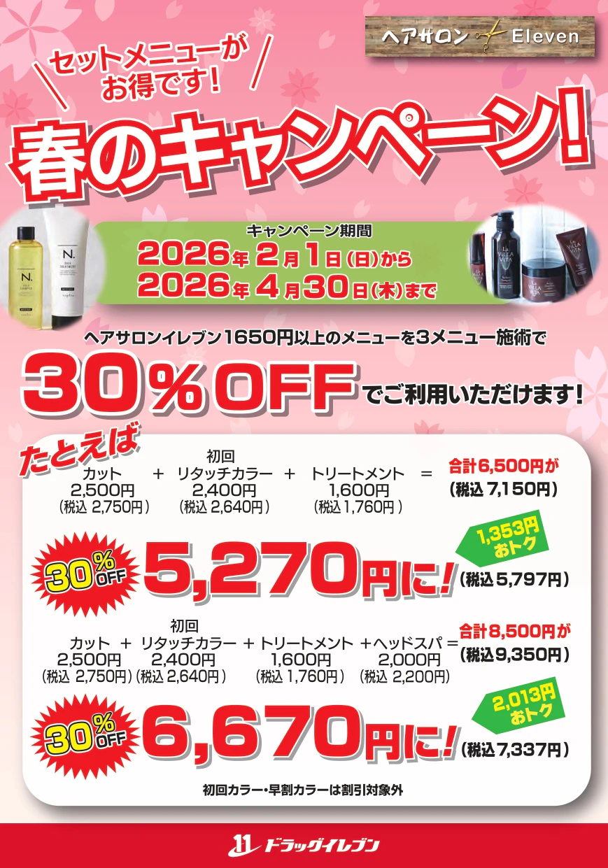 ヘアサロンイレブン 春のキャンペーン